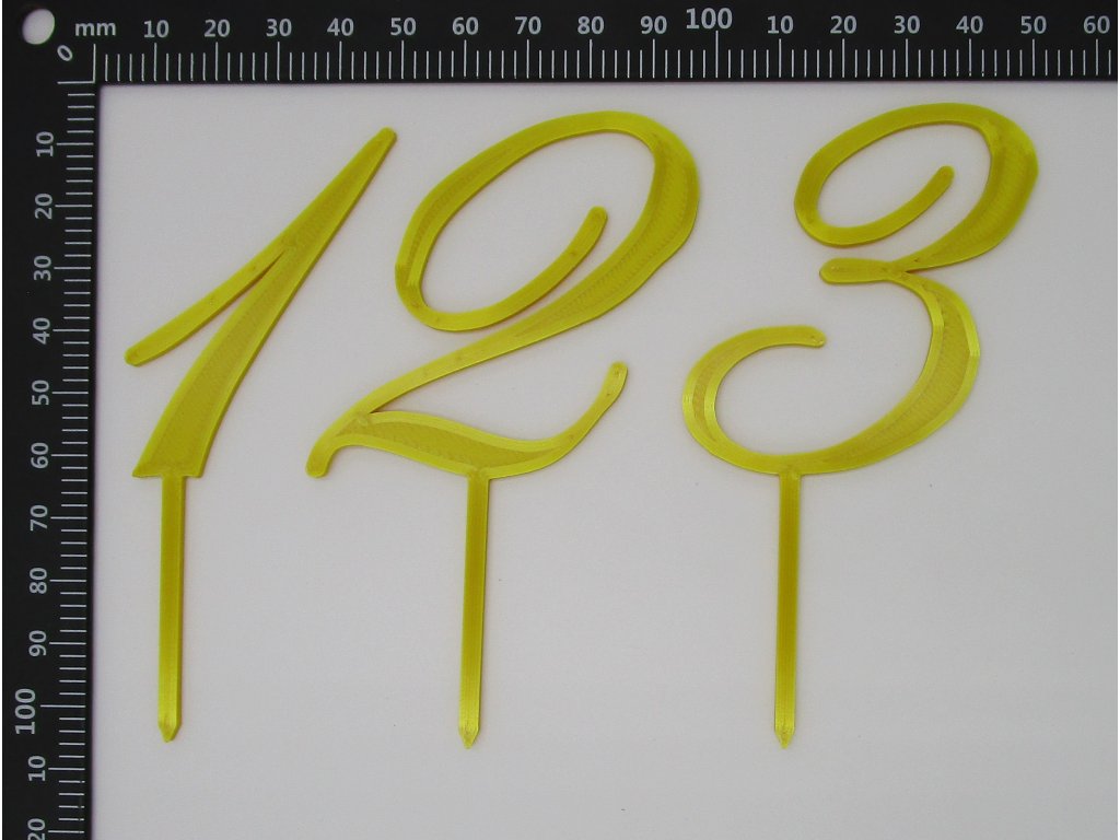 Číslice určené pro zapíchnutí do dortu - jednotlivě. Font Edwardian 55 mm.