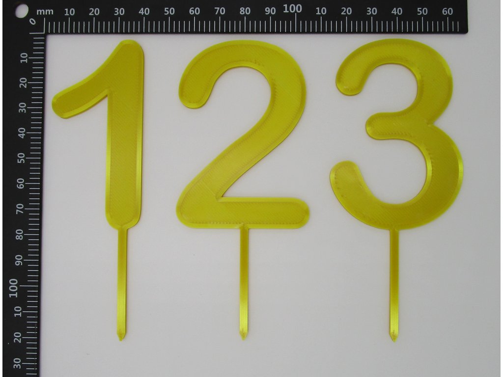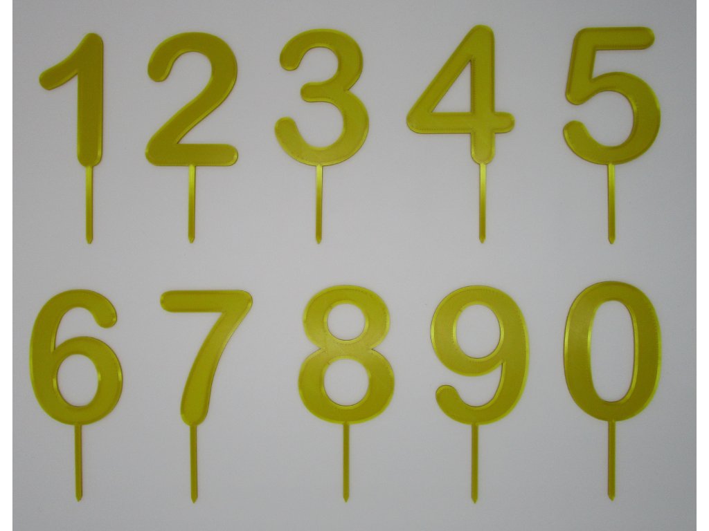 Číslice určené pro zapíchnutí do dortu - sada deseti číslic. Font Arial rounded 75 mm.