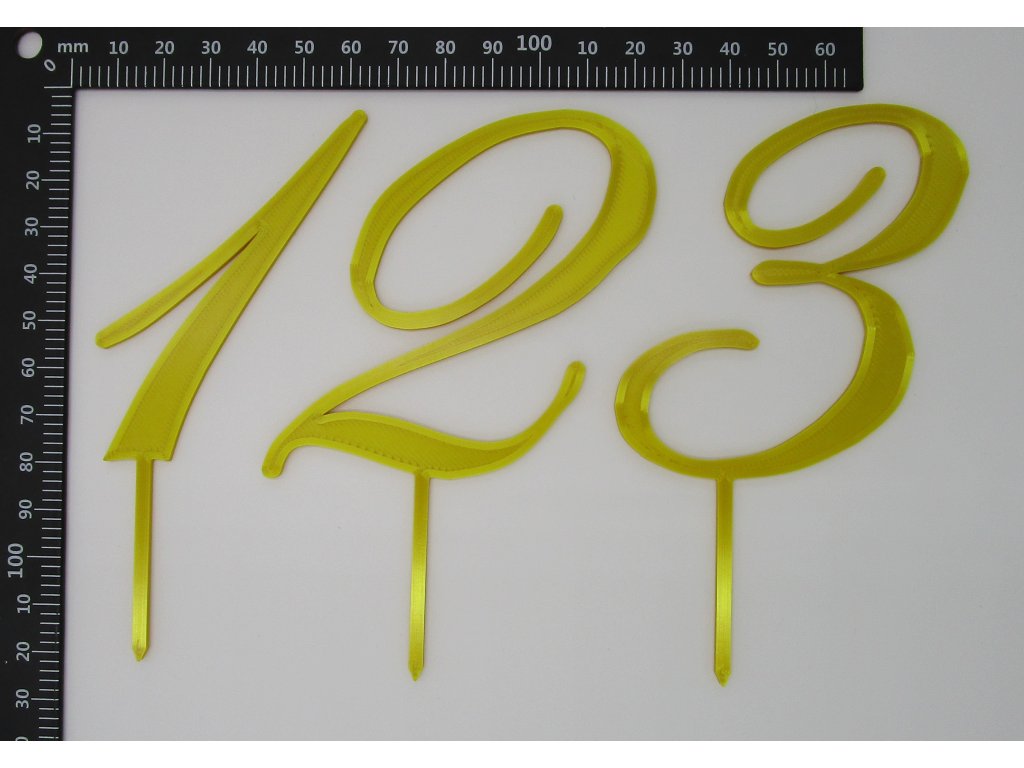Číslice určené pro zapíchnutí do dortu - jednotlivě. Font Edwardian 75 mm.