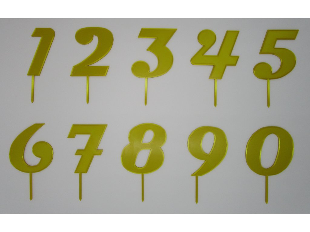 Číslice určené pro zapíchnutí do dortu - sada deseti číslic. Font Magneto 75 mm.