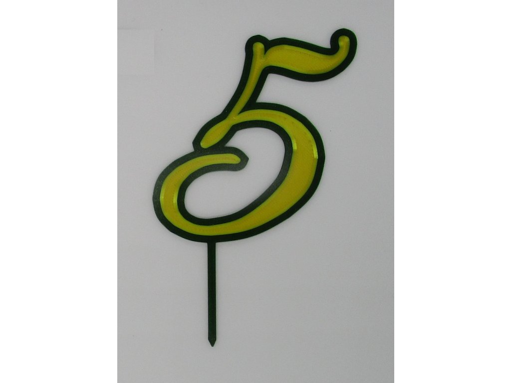 Číslice určené pro zapíchnutí do dortu - jednotlivě. Font Edwardian 80 mm dvě barvy.