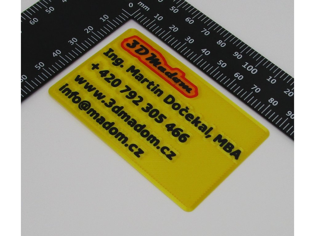 Výrobek je vyroben z bioplastu PLA, technologií 3D tisku. Takto vyrobené vizitky jsou velice ohebné a nestandardní.
