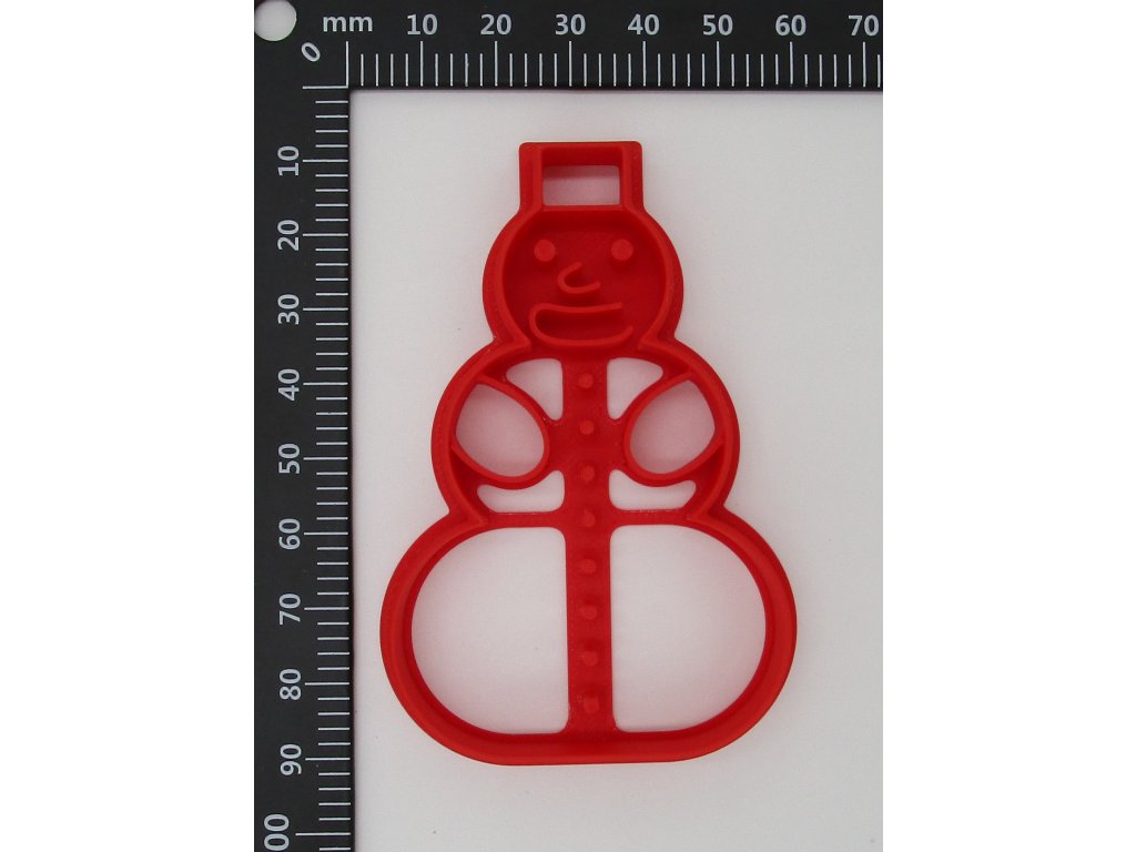 Vykrajovátko ve tvaru sněhuláka s trojrozměrným motivem.