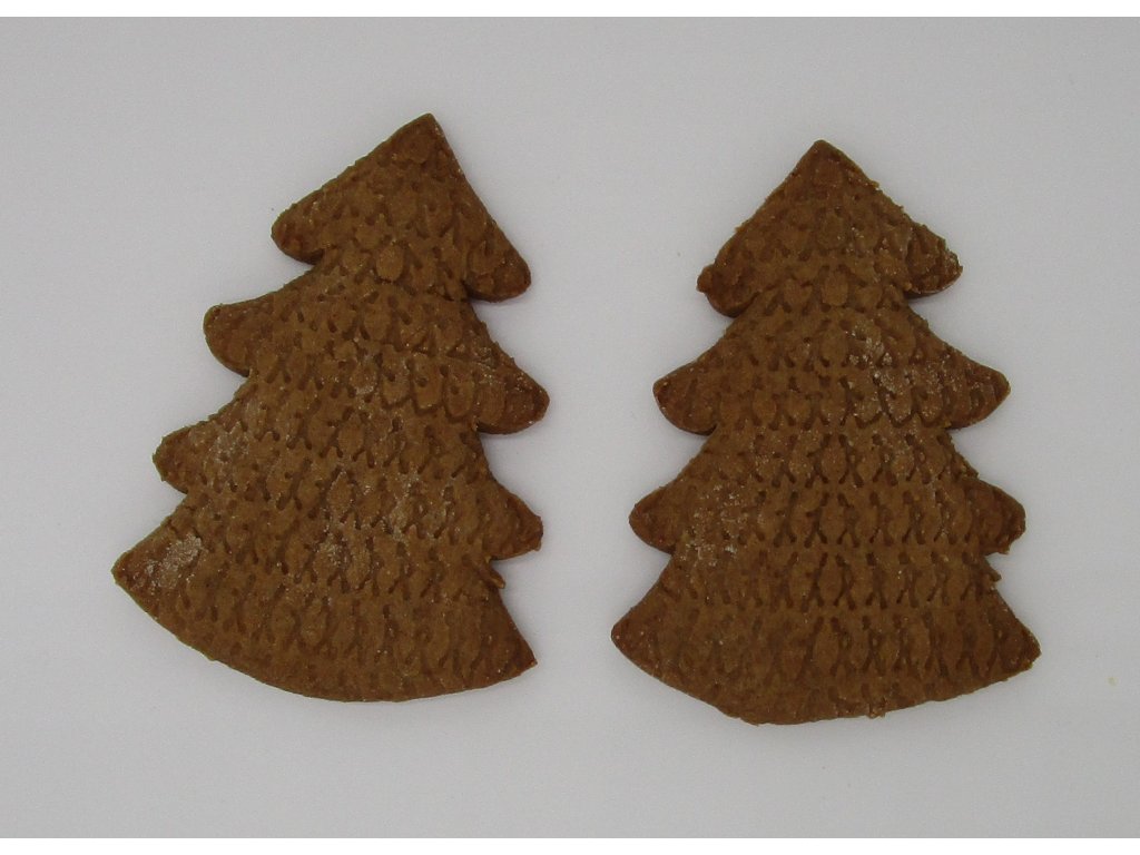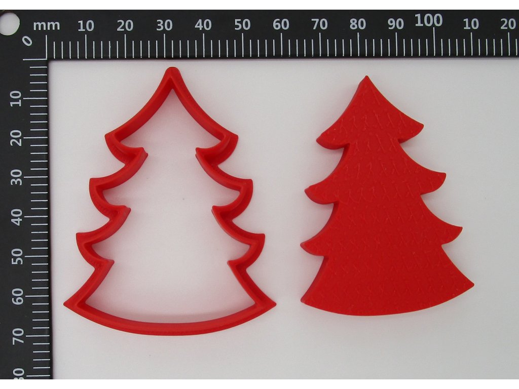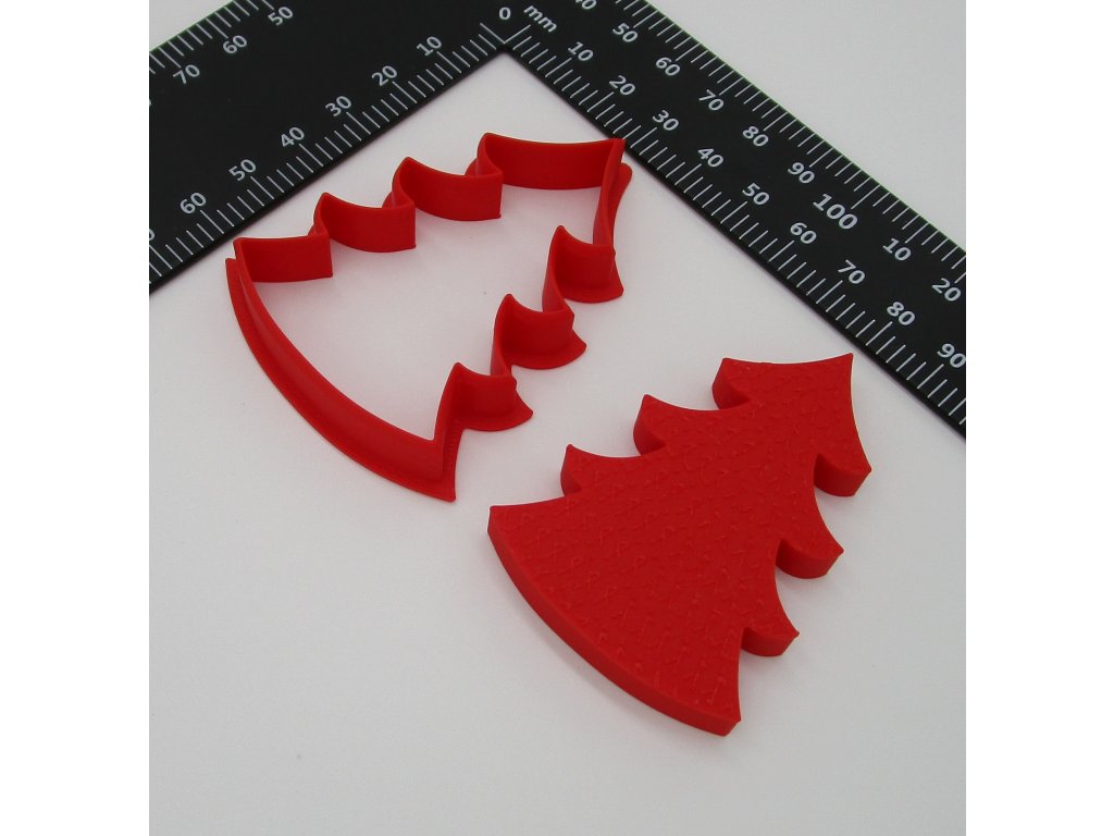 Vykrajovátko ve tvaru stromečku s trojrozměrným motivem.