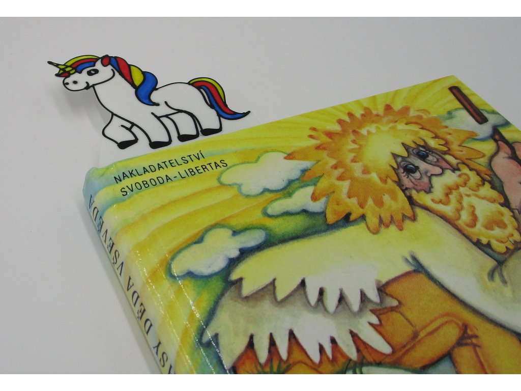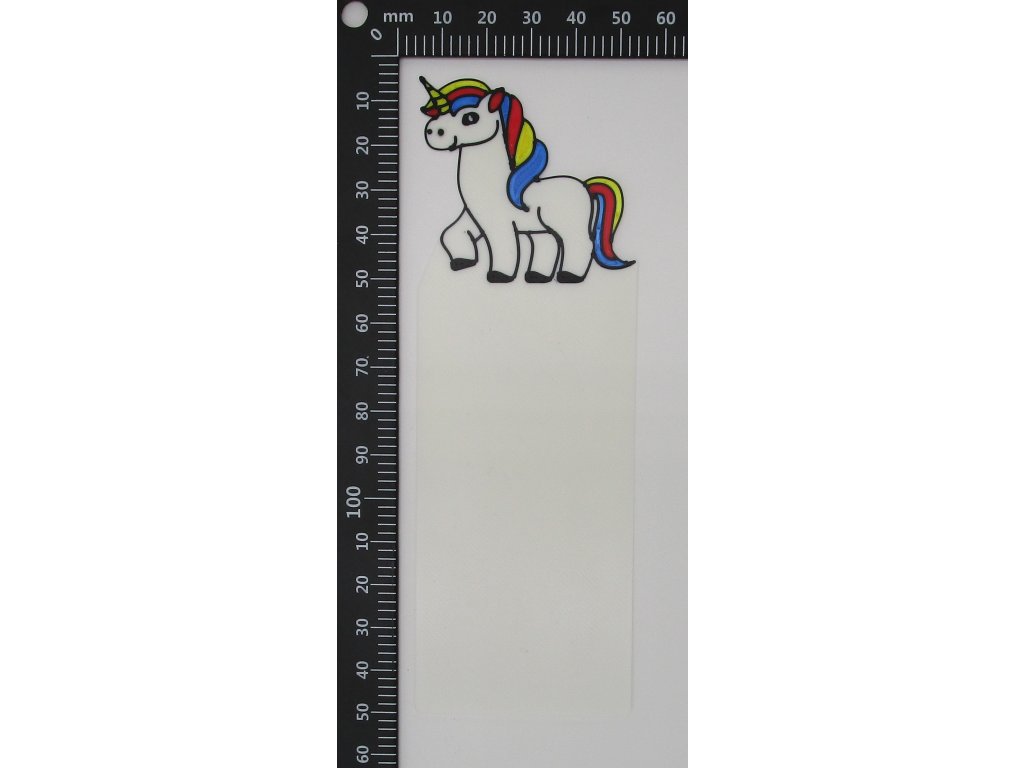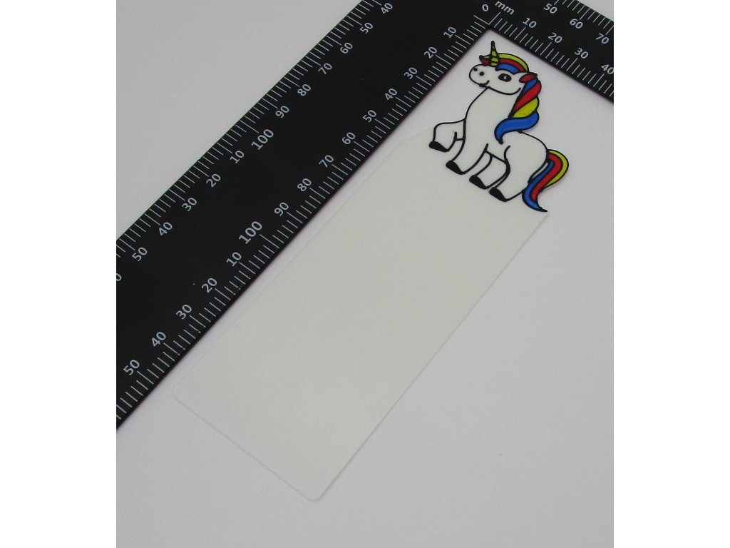 Záložka do knihy s dvourozměrným, celým jednorožcem.