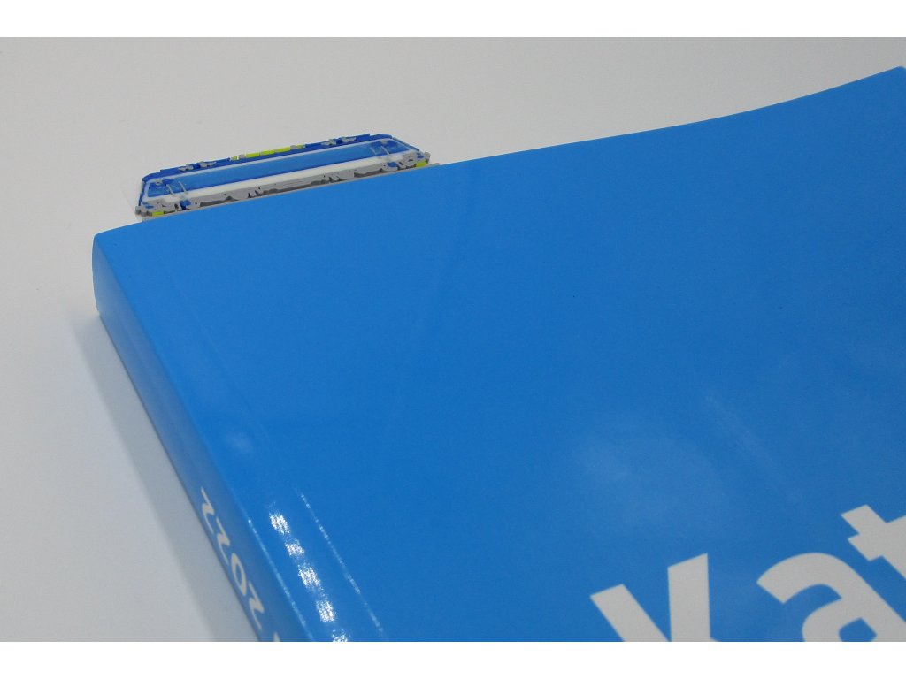 Záložka do knihy s trojrozměrnou lokomotivou řady 1216.