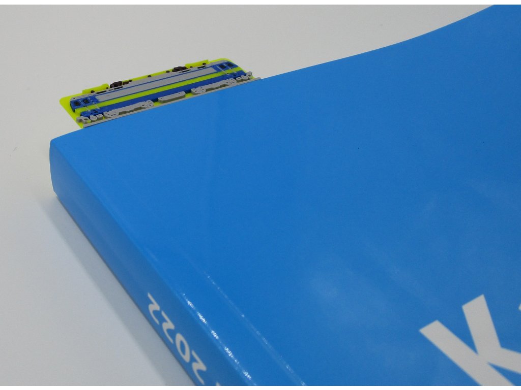 Záložka do knihy s trojrozměrnou lokomotivou řady 362.
