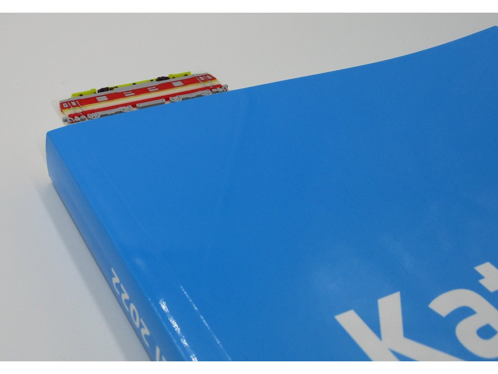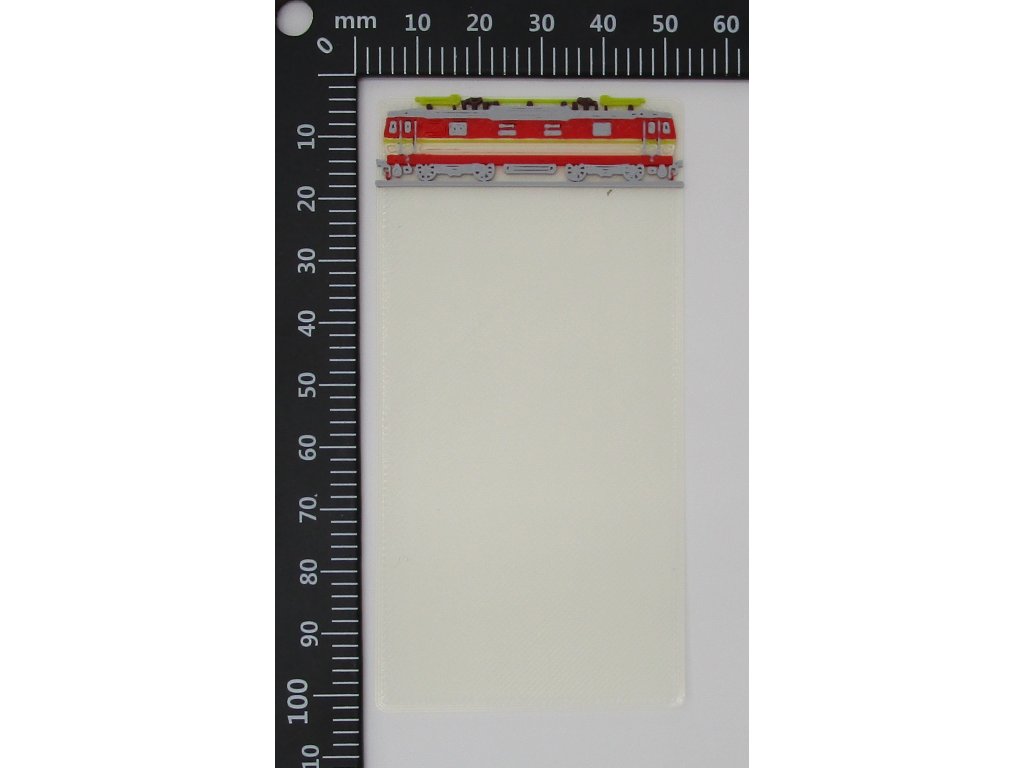 Záložka do knihy s trojrozměrnou lokomotivou řady 371.