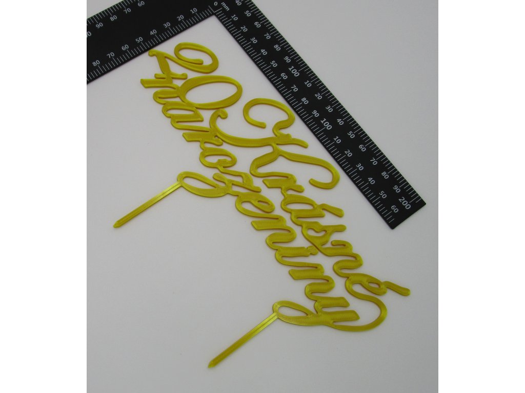 Zápich do dortu ve tvaru textu "Krásné narozeniny" s číslem.