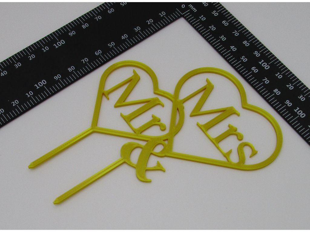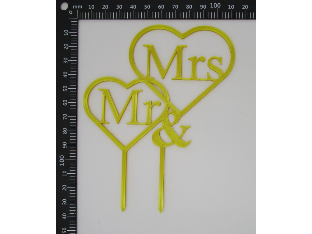 Zápich do svatebního dortu ve tvaru textu "Mr a Mrs".