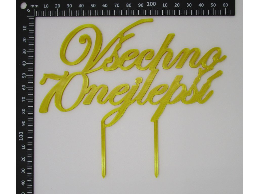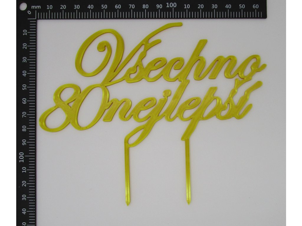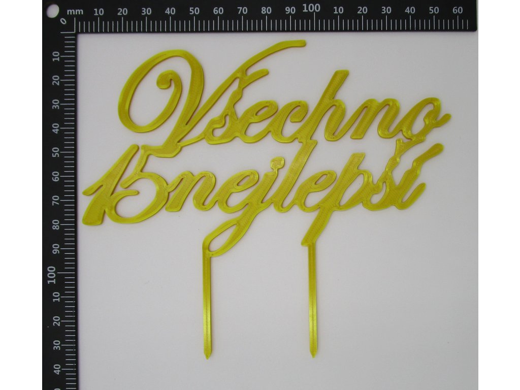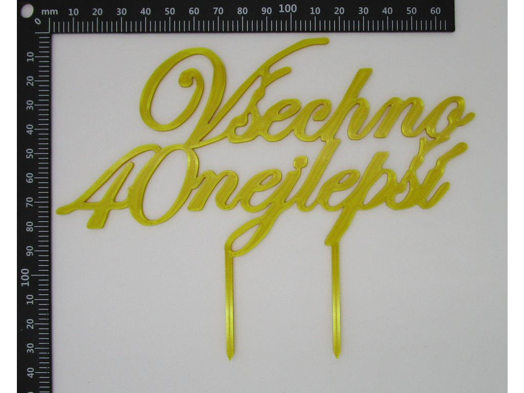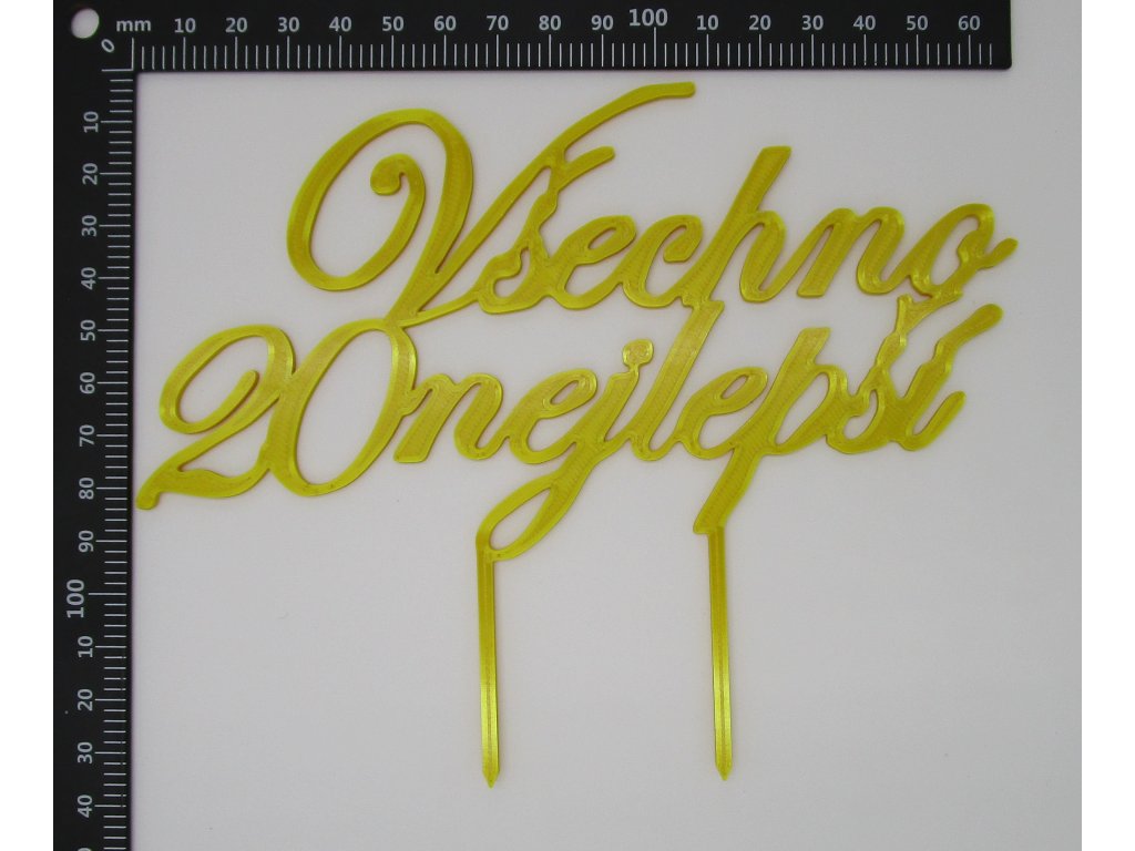 Zápich do dortu ve tvaru textu "Všechno nejlepší" s číslem.
