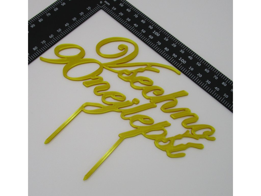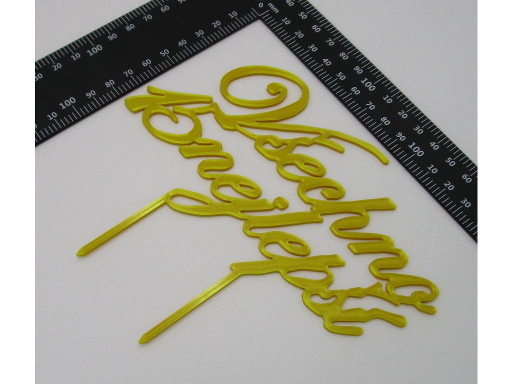 Výrobek je vyroben z bioplastu PLA, technologií 3D tisku. Výrobek je určen pro nazdobení dortu. Nedoporučujeme používat zápich opakovaně, protože je jeho povrch pórovitý a v jeho pórech by mohly po umytí vznikat plísně. Výrobek nemyjte v myčce, může dojít k jeho deformaci.