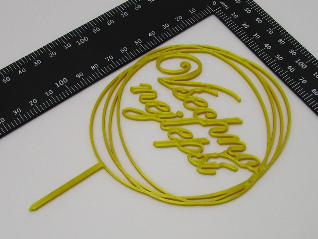 Výrobek je vyroben z bioplastu PLA, technologií 3D tisku. Výrobek je určen pro nazdobení dortu. Nedoporučujeme používat zápich opakovaně, protože je jeho povrch pórovitý a v jeho pórech by mohly po umytí vznikat plísně. Výrobek nemyjte v myčce, může dojít k jeho deformaci.