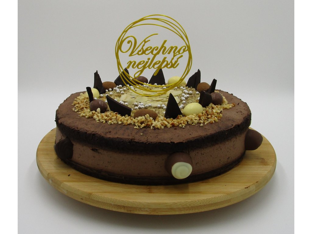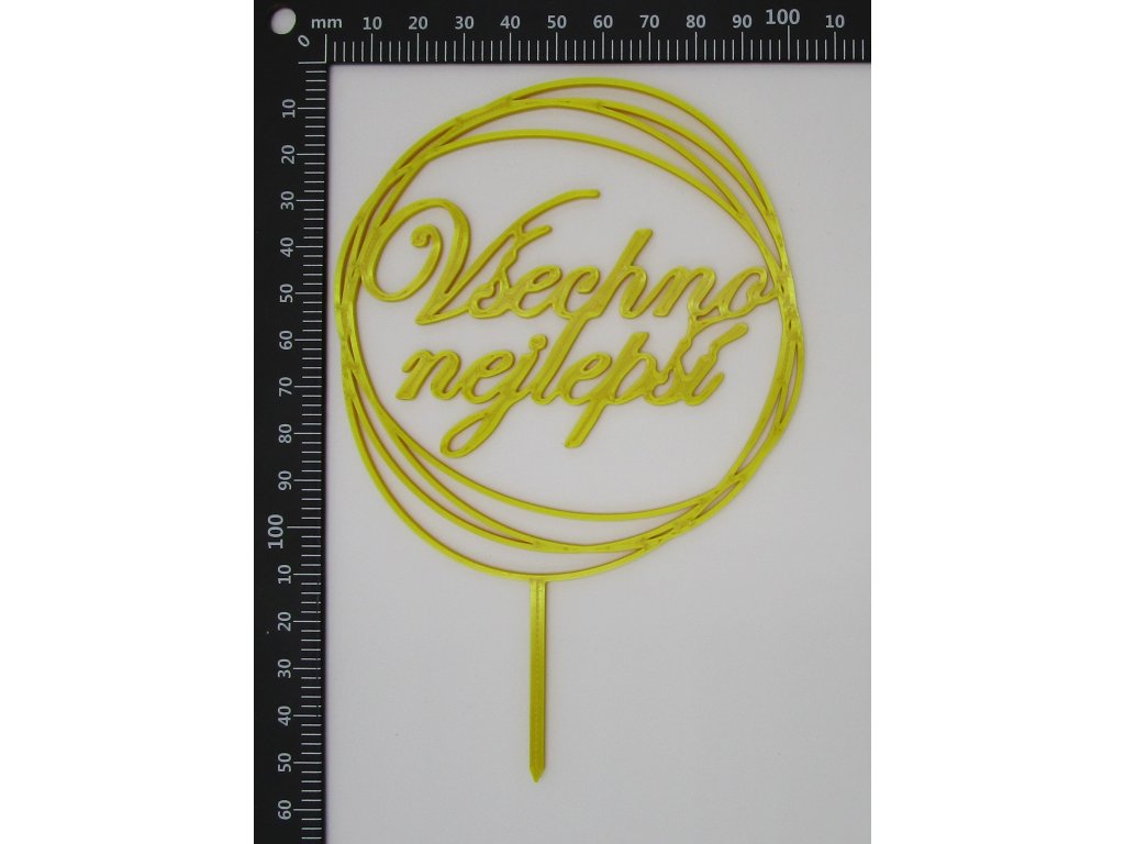 Zápich do dortu ve tvaru textu "Všechno nejlepší" v kruhu.